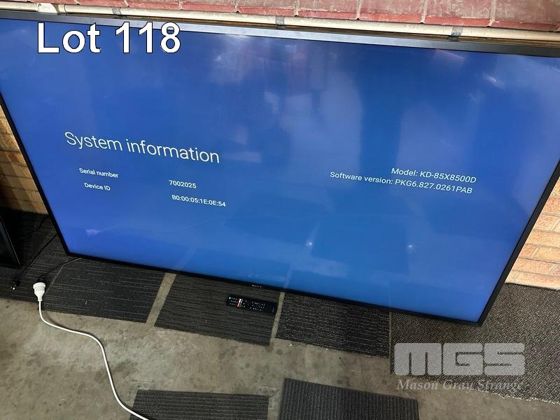 SONY BRAVIA 85" 4K SMART LED TV, KD-85X8500D WITH REMOTE (NO STAND) S/N:7002025