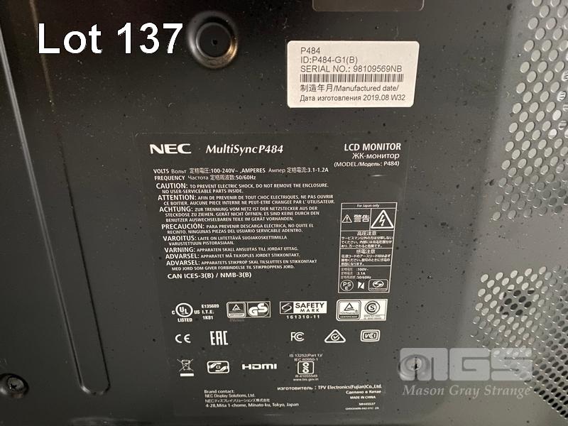 MONITOR, NEC MULTISYNC P484 48" COMMERCIAL LCD DISPLAY (NO REMOTE, NO STAND) S/N:98109569NB