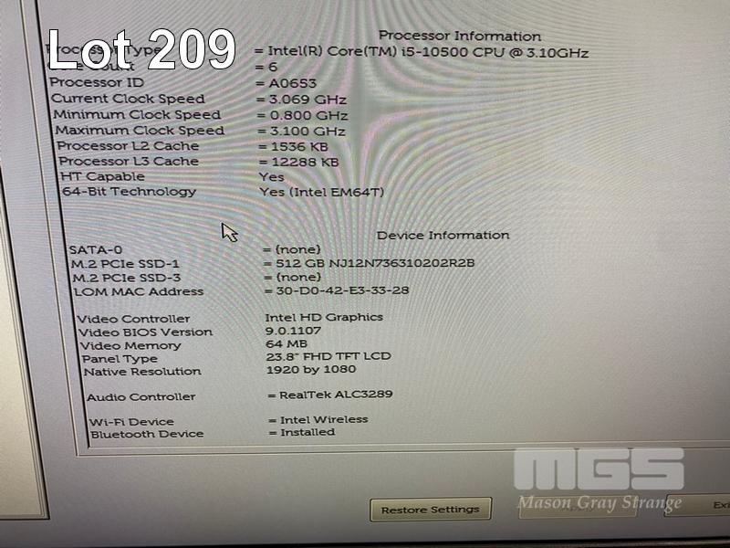 ALL-IN-ONE PC, DELL OPTIPLEX 7480, CORE i5 10500 (10TH GEN) @ 3.1GHz, 8GB DDR4 RAM, 512GB NVMe M.2 SSD, INBUILT 23.8" FHD WIDESCREEN (1920x1080), INTEL HD VIDEO, WEBCAM, 5 x USB, 1 x USB-C, Wi-Fi, BLUETOOTH, WINDOWS 11 HOME INSTALLED, KEYBOARD & MOUSE S/N:5WW54F3