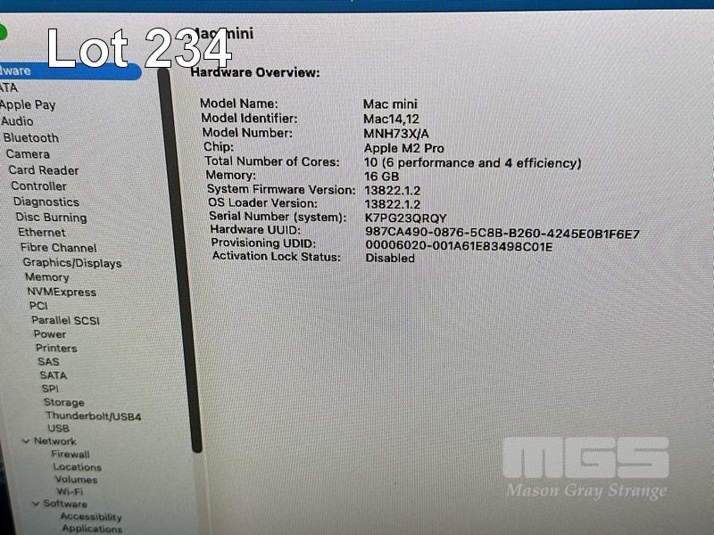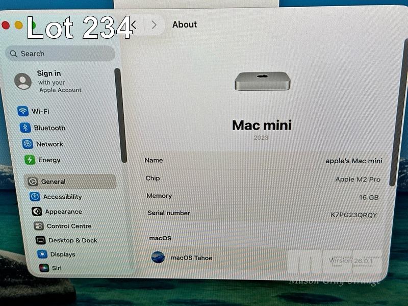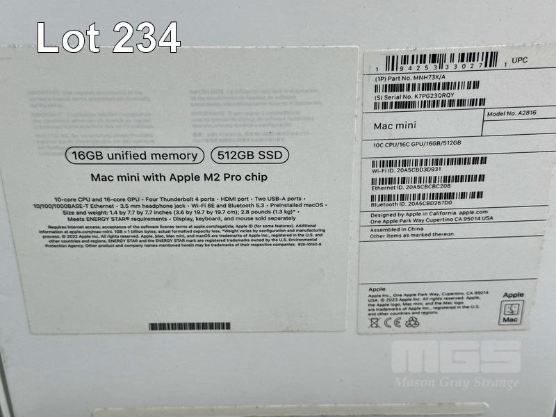 APPLE MAC MINI (A2816), MNH73X/A, APPLE M2 PRO 10 CPU, 16 GPU, 16GB RAM, 512GB SSD, Wi-Fi, BLUETOOTH, MAC OS 26 INSTALLED, KEYBOARD (A3203) & MOUSE (A1657) S/N:K7PG23QRQY