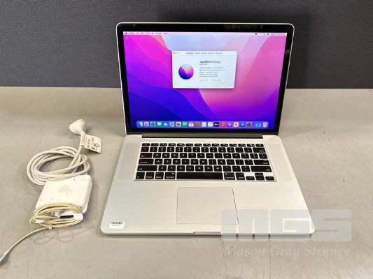 LAPTOP, APPLE MACBOOK PRO (A1398), CORE i7 4770HQ (4TH GEN) @ 2.2GHz, 16GB DDR3 RAM, 256GB SSD, 15.4" RETINA DISPLAY (2880x1800), INTEL IRIS PRO GRAPHICS, Wi-Fi, BLUETOOTH, MAC OS 12 INSTALLED & POWER SUPPLY (NOTE: BATTERY SERVICE RECOMMENDED MESSAGE, MINOR DENT IN CASING, MINOR MARKS ON SCREEN) S/N:C02R5191G8WN