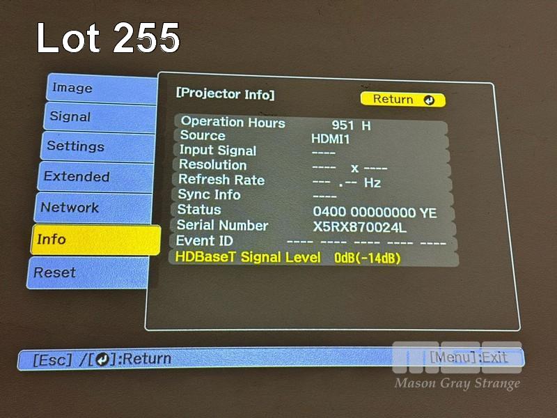 LASER PROJECTOR, EPSON EB-L610U WUXGA 3LCD, 6,000 LUMENS, 951 HOURS SHOWING WITH REMOTE S/N:X5RX870024L