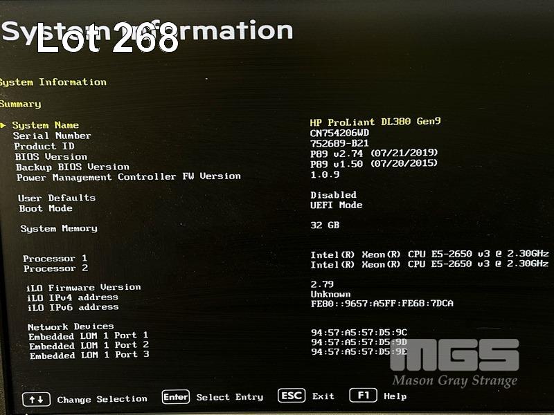 RACKMOUNT SERVER, HP PROLIANT DL380 Gen9, 2U, 2 x XEON E5-2650 v3 @ 2.3GHz, 32GB ECC DDR4 RAM, 2 x 300GB SAS HDD, 2 x 800W PSU (NO CABLES) S/N:CN754206WD
