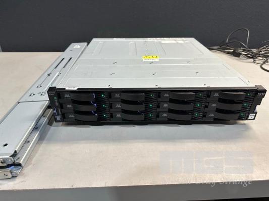 RACKMOUNT STORAGE ARRAY, IBM STORWISE V7000 EXPANSION, 2076-12F, 2U, 12 x 4TB SAS HDD, 2 x CONTROLLERS, 2 x PSU WITH RAILS (NO CABLES) S/N:78203VM