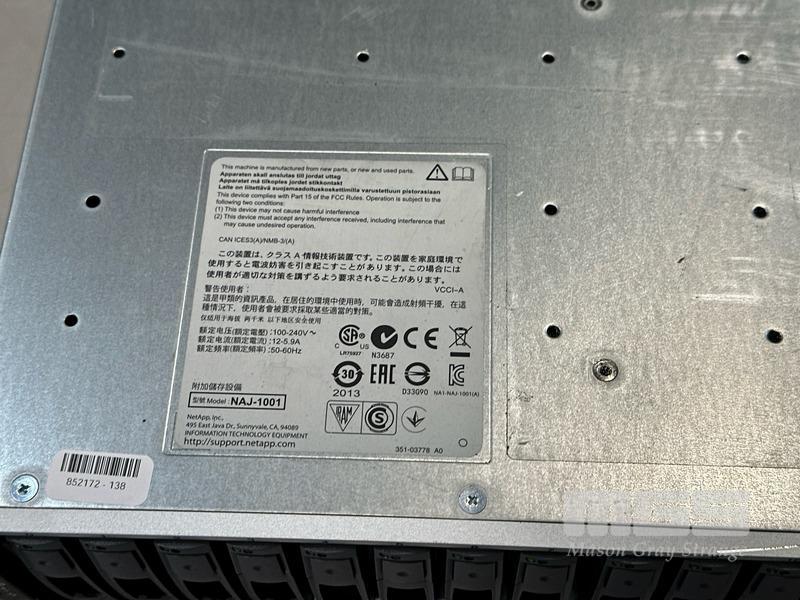 RACKMOUNT STORAGE ARRAY, NETAPP DS2246 (NAJ-1001), 2U, 24 x 900GB SAS HDD, 2 x IOM 6 SAS STORAGE CONTROLLERS, 2 x PSU (NO CABLES)