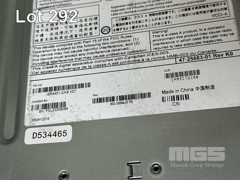 CISCO 4400 SERIES INTEGRATED SERVICES ROUTER, 2U, ISR4451-X/K9 V07, 2 x PSU S/N:FGL22208095