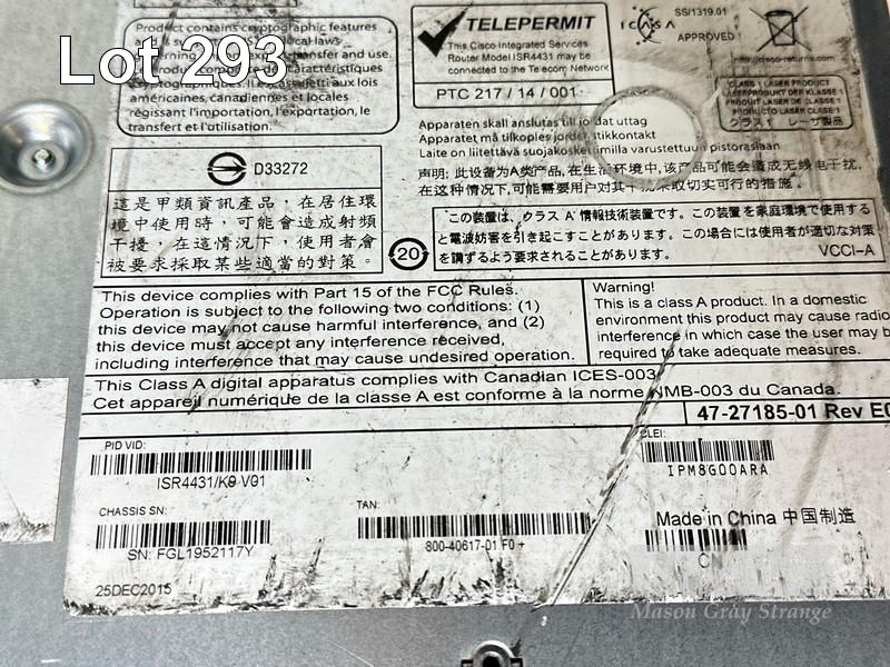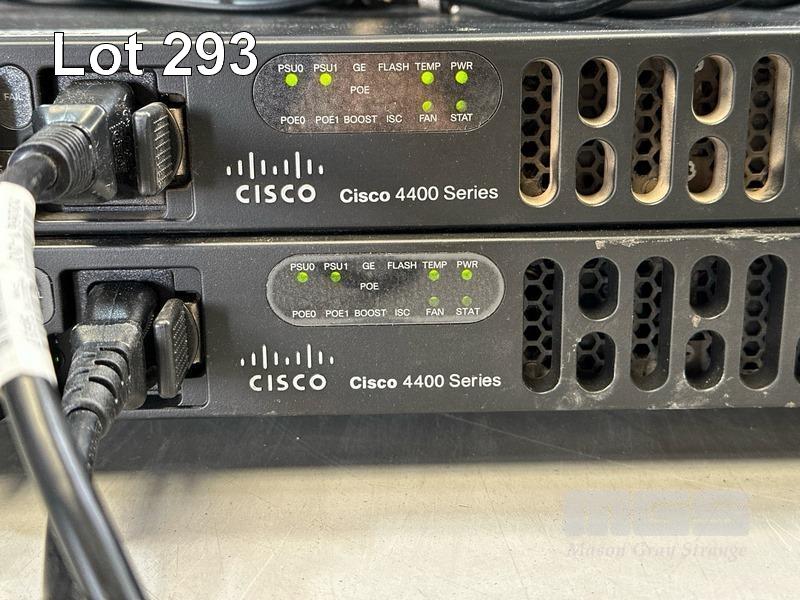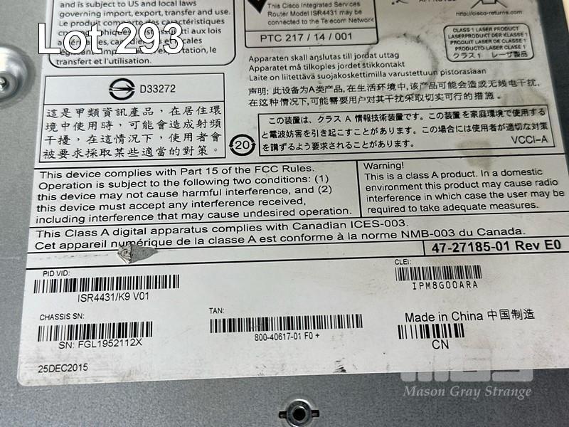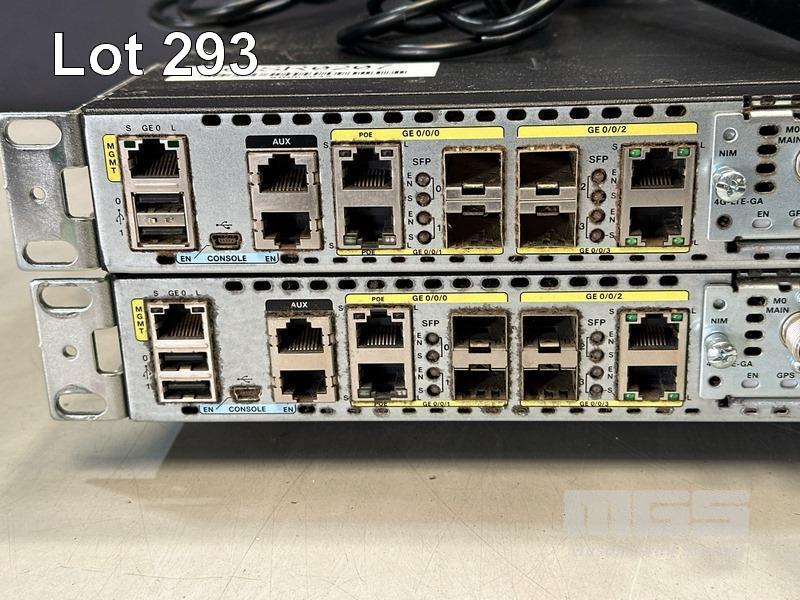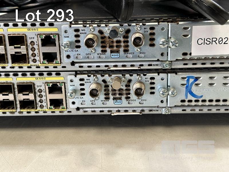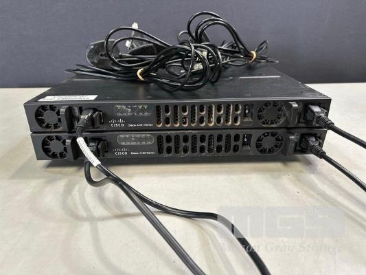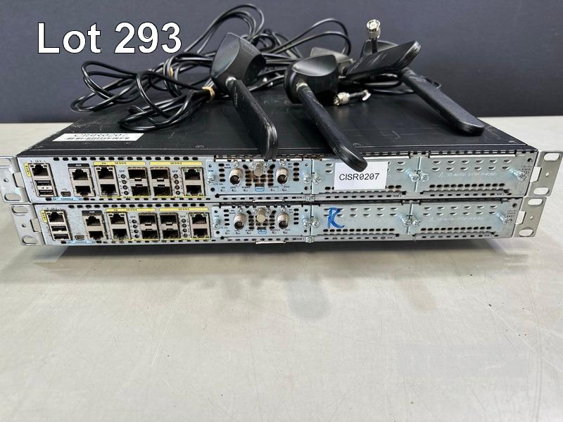 2 x CISCO 4400 SERIES INTEGRATED SERVICES ROUTERS, ISR4431/K9 V01, 4G-LTE-GA NETWORK INTERFACE MODULE EACH WITH 2 x 4G-LTE-ANTM-D ANTENNAS, 2 x PSU S/N:FGL1952112X, FGL1952117Y