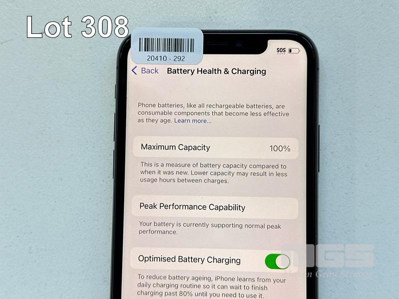 APPLE iPHONE X, 256GB, MODEL MQA82X/A, A1865, SPACE GREY, BATTERY HEALTH 100% (NO CABLE, NO CHARGER) (NOTE: CRACK LINE ON SCREEN, SCREEN BLEMISH, MINOR SCRATCHES ON SCREEN) S/N:F2MVM4AEJCL6