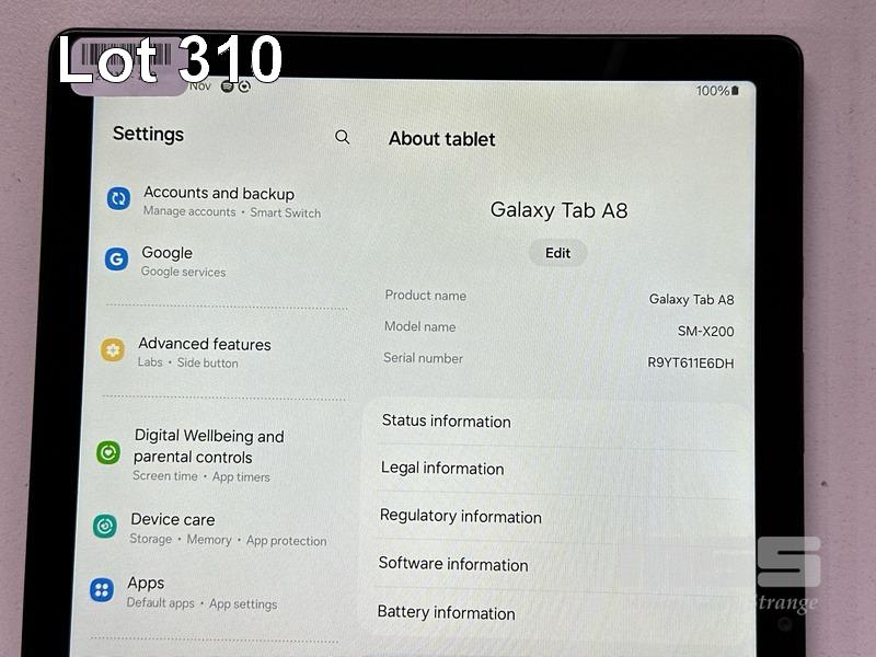 SAMSUNG GALAXY TAB A8 TABLET, SM-X200, 64GB (NO USB-C CABLE, NO CHARGER) S/N:R9YT611E6DH