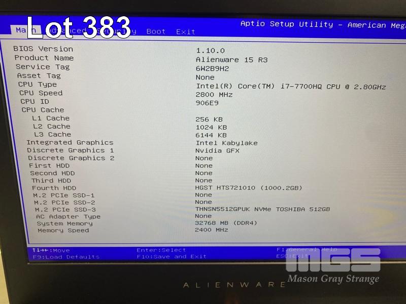 LAPTOP, ALIENWARE 15 R3, CORE i7 7700HQ (7TH GEN) @ 2.8GHz, 32GB DDR4 RAM, 512GB NVMe M.2 SSD, 1TB SATA HDD, 15.6" WIDESCREEN (1920x1080), 8GB NVIDIA GEFORCE GTX 1070 VIDEO, Wi-Fi, BLUETOOTH, WINDOWS 10 HOME INSTALLED & POWER SUPPLY S/N:6W2B9H2