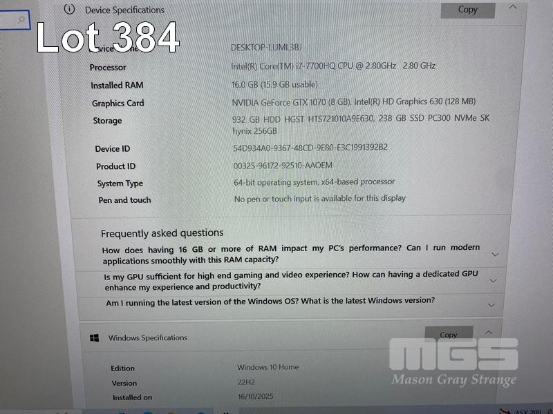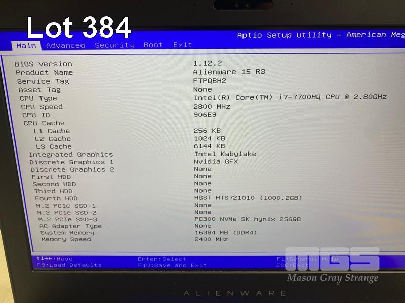 LAPTOP, ALIENWARE 15 R3, CORE i7 7700HQ (7TH GEN) @ 2.8GHz, 16GB DDR4 RAM, 256GB NVMe M.2 SSD, 1TB SATA HDD, 15.6" WIDESCREEN (1920x1080), 8GB NVIDIA GEFORCE GTX 1070 VIDEO, Wi-Fi, BLUETOOTH, WINDOWS 10 HOME INSTALLED & POWER SUPPLY S/N:FTPQBH2