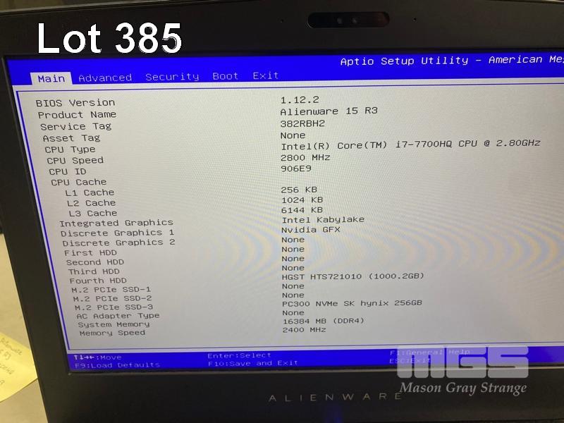 LAPTOP, ALIENWARE 15 R3, CORE i7 7700HQ (7TH GEN) @ 2.8GHz, 16GB DDR4 RAM, 256GB NVMe M.2 SSD, 1TB SATA HDD, 15.6" WIDESCREEN (1920x1080), 8GB NVIDIA GEFORCE GTX 1070 VIDEO, Wi-Fi, BLUETOOTH, WINDOWS 10 HOME INSTALLED & POWER SUPPLY S/N:382RBH2