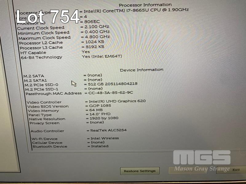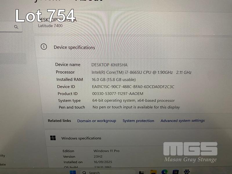 LAPTOP, DELL LATITUDE 7400, CORE i7 8665U (8TH GEN) @ 1.9GHz, 16GB DDR4 RAM, 512GB NVMe M.2 SSD, 14" WIDESCREEN (1920x1080), INTEL UHD GRAPHICS 620, Wi-Fi, BLUETOOTH, WINDOWS 11 PRO INSTALLED & POWER SUPPLY (NOTE: CASING PEELING, SPOTS ON SCREEN) S/N:9SND063