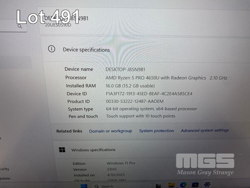 LAPTOP, LENOVO THINKPAD T14 Gen1, TYPE 20UE, AMD RYZEN 5 PRO 4650U @ 2.1GHz, 16GB DDR4 RAM, 512GB NVMe M.2 SSD, 14" TOUCHSCREEN (1920x1080), Wi-Fi, BLUETOOTH, WINDOWS 11 PRO INSTALLED (NO USB-C POWER SUPPLY) (NOTE: MARKS ON SCREEN) S/N:PF240N1C