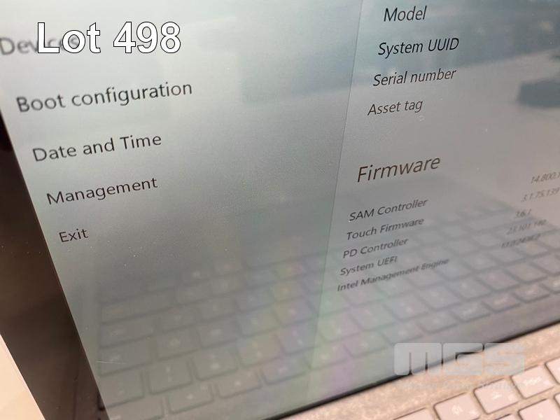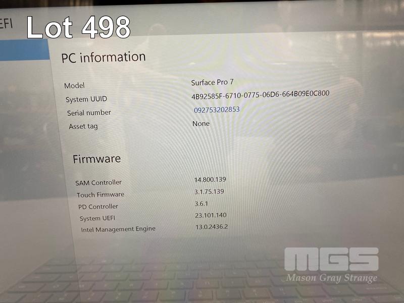 TABLET PC, MICROSOFT SURFACE PRO 7, MODEL 1866, CORE i5 1035G4 (10TH GEN) @ 1.1GHz, 8GB RAM, 128GB NVMe M.2 SSD, 12.3" TOUCHSCREEN, Wi-Fi, BLUETOOTH, WINDOWS 11 HOME INSTALLED, KEYBOARD TYPE COVER & POWER SUPPLY (NOTE: SPOTS ON SCREEN) S/N:092753202853