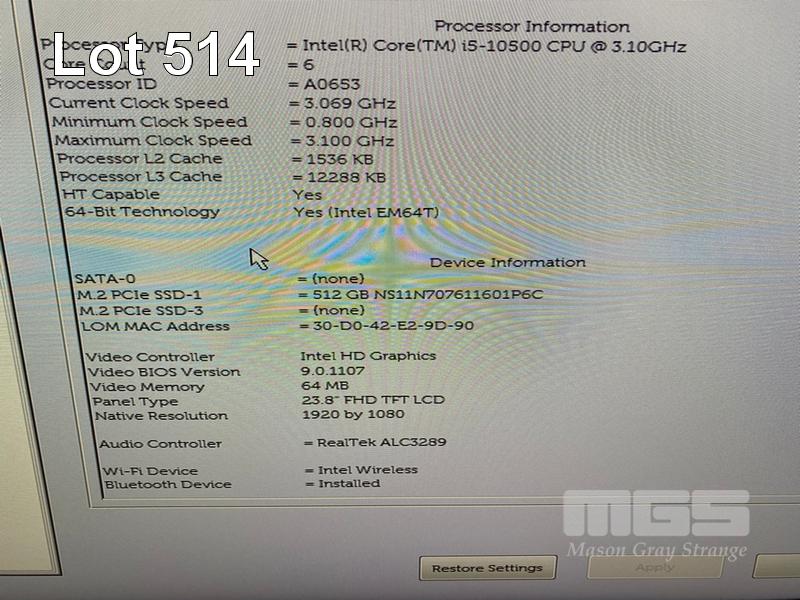 ALL-IN-ONE PC, DELL OPTIPLEX 7480, CORE i5 10500 (10TH GEN) @ 3.1GHz, 8GB DDR4 RAM, 512GB NVMe M.2 SSD, INBUILT 23.8" FHD WIDESCREEN (1920x1080), INTEL HD VIDEO, WEBCAM, 5 x USB, 1 x USB-C, Wi-Fi, BLUETOOTH, WINDOWS 11 HOME INSTALLED, KEYBOARD & MOUSE S/N:BSMWVD3