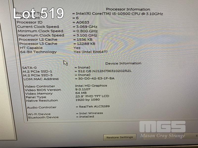 ALL-IN-ONE PC, DELL OPTIPLEX 7480, CORE i5 10500 (10TH GEN) @ 3.1GHz, 8GB DDR4 RAM, 512GB NVMe M.2 SSD, INBUILT 23.8" FHD WIDESCREEN (1920x1080), INTEL HD VIDEO, WEBCAM, 5 x USB, 1 x USB-C, Wi-Fi, BLUETOOTH, WINDOWS 11 HOME INSTALLED, KEYBOARD & MOUSE S/N:JWW54F3