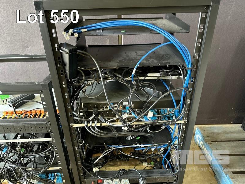 2 x DATA RACK FRAMES, 18RU, 12RU WITH CONTENTS INC AMX, EXTRON, POLYCOM REALPRESENCE GROUP 700, DATA PROBE, BIAMP TESIRA FORTE CI, POWER BOARDS ETC