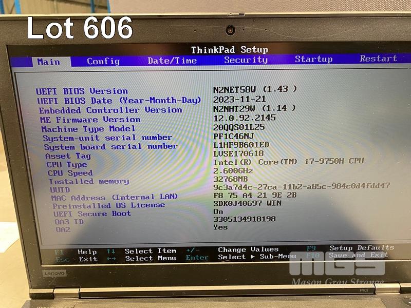 LAPTOP, LENOVO THINKPAD P53 MOBILE WORKSTATION, TYPE 20QQ, CORE i7 9750H (9TH GEN) @ 2.6GHz, 32GB DDR4 RAM, 512GB NVMe M.2 SSD, 15.6" WIDESCREEN (1920x1080), 4GB NVIDIA QUADRO T2000 VIDEO, Wi-Fi, BLUETOOTH, WINDOWS 11 PRO INSTALLED (NO POWER SUPPLY) (NOTE: MINOR MARKS ON SCREEN) S/N:PF1C46NJ