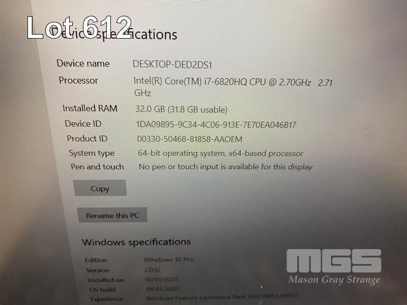 LAPTOP, LENOVO THINKPAD P50 MOBILE WORKSTATION, TYPE 20EQ, CORE i7 6820HQ (6TH GEN) @ 2.7GHz, 32GB DDR4 RAM, 512GB M.2 SSD, 15.6" WIDESCREEN (1920x1080), 4GB NVIDIA QUADRO M2000M VIDEO, Wi-Fi, BLUETOOTH, WINDOWS 10 PRO INSTALLED (NO POWER SUPPLY) (NOTE: MARKS ON SCREEN, KEYS ON KEYBOARD WORN, RUBBER SEAL LOOSE) S/N:PC0KZC7D