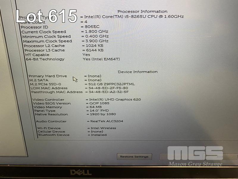 LAPTOP, DELL LATITUDE 5400, CORE i5 8265U (8TH GEN) @ 1.6GHz, 8GB DDR4 RAM, 512GB NVMe M.2 SSD, 14" WIDESCREEN (1920x1080), INTEL UHD GRAPHICS 620, Wi-Fi, BLUETOOTH, WINDOWS 11 HOME INSTALLED, POWER SUPPLY & CARRY BAG S/N:3J1HQ13