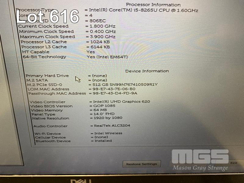 LAPTOP, DELL LATITUDE 5400, CORE i5 8265U (8TH GEN) @ 1.6GHz, 8GB DDR4 RAM, 512GB NVMe M.2 SSD, 14" WIDESCREEN (1920x1080), INTEL UHD GRAPHICS 620, Wi-Fi, BLUETOOTH, WINDOWS 11 HOME INSTALLED, POWER SUPPLY & CARRY BAG S/N:3Y05ZY2