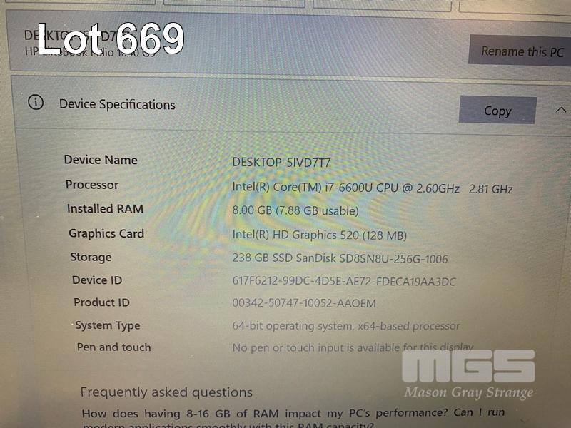 LAPTOP, HP ELITEBOOK FOLIO 1040 G3, CORE i7 6600U (6TH GEN) @ 2.6GHz, 8GB DDR4 RAM, 256GB SSD, 14" WIDESCREEN (1920x1080), INTEL HD VIDEO, Wi-Fi, BLUETOOTH, WINDOWS 10 PRO INSTALLED & POWER SUPPLY (NOTE: KEYBOARD FAULT, DAMAGED USB PORT) S/N:5CD720983F
