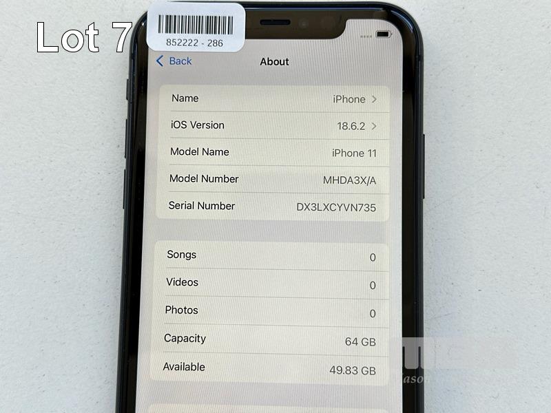 APPLE iPHONE 11, 64GB, MODEL MHDA3X/A, A2221, BLACK, BATTERY HEALTH 98% (NO CABLE, NO CHARGER) S/N:DX3LXCYVN735