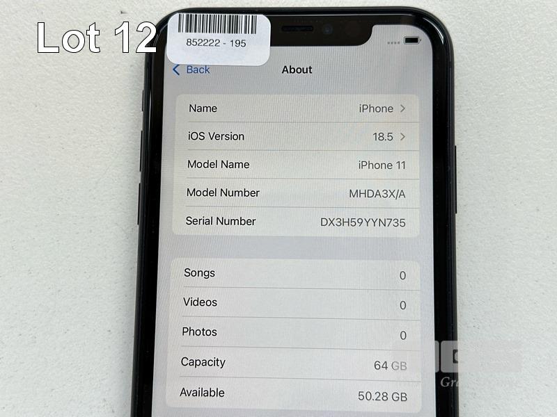 APPLE iPHONE 11, 64GB, MODEL MHDA3X/A, A2221, BLACK, BATTERY HEALTH 94% (NO CABLE, NO CHARGER) S/N:DX3H59YYN735