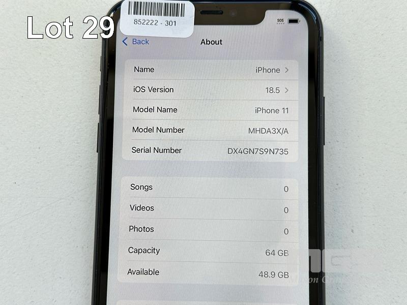 APPLE iPHONE 11, 64GB, MODEL MHDA3X/A, A2221, BLACK, BATTERY HEALTH 86% (NO CABLE, NO CHARGER) S/N:DX4GN7S9N735