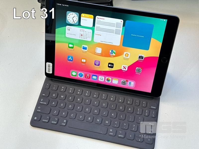 APPLE iPAD 7TH GEN, 128GB, Wi-Fi, SPACE GREY, MODEL MW772X/A, A2197 WITH KEYBOARD COVER (NO CABLE, NO CHARGER) (NOTE: MINOR SCRATCHES ON SCREEN) S/N:DMPZCJJMMF3Q