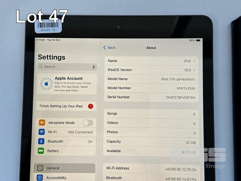 APPLE iPAD 7TH GEN, 32GB, Wi-Fi, SPACE GREY, MODEL MW742X/A, A2197 WITH COVER (NO CABLE, NO CHARGER) S/N:DMPZ70FVMF3M