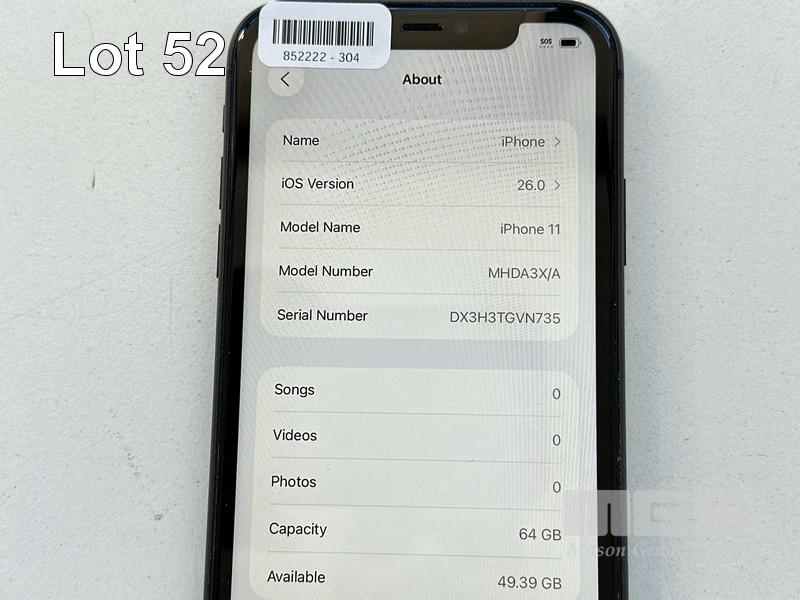 APPLE iPHONE 11, 64GB, MODEL MHDA3X/A, A2221, BLACK, BATTERY HEALTH 85% (NO CABLE, NO CHARGER) S/N:DX3H3TGVN735