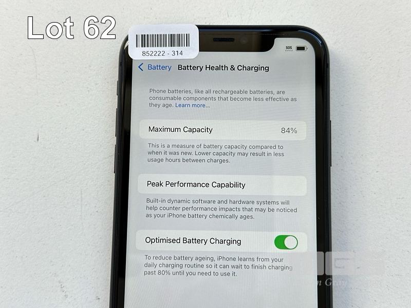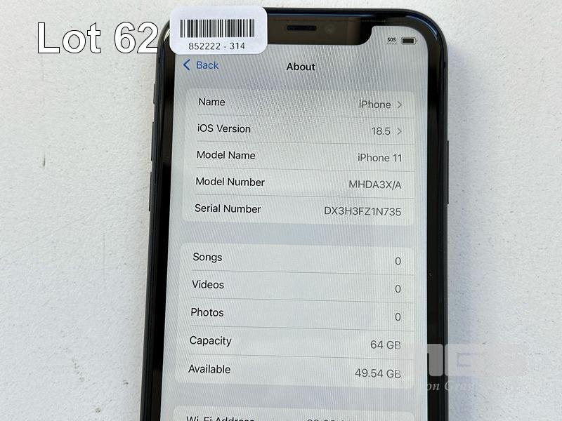 APPLE iPHONE 11, 64GB, MODEL MHDA3X/A, A2221, BLACK, BATTERY HEALTH 84% (NO CABLE, NO CHARGER) S/N:DX3H3FZ1N735