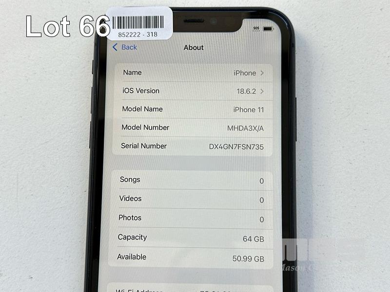 APPLE iPHONE 11, 64GB, MODEL MHDA3X/A, A2221, BLACK, BATTERY HEALTH 83% (NO CABLE, NO CHARGER) S/N:DX4GN7FSN735