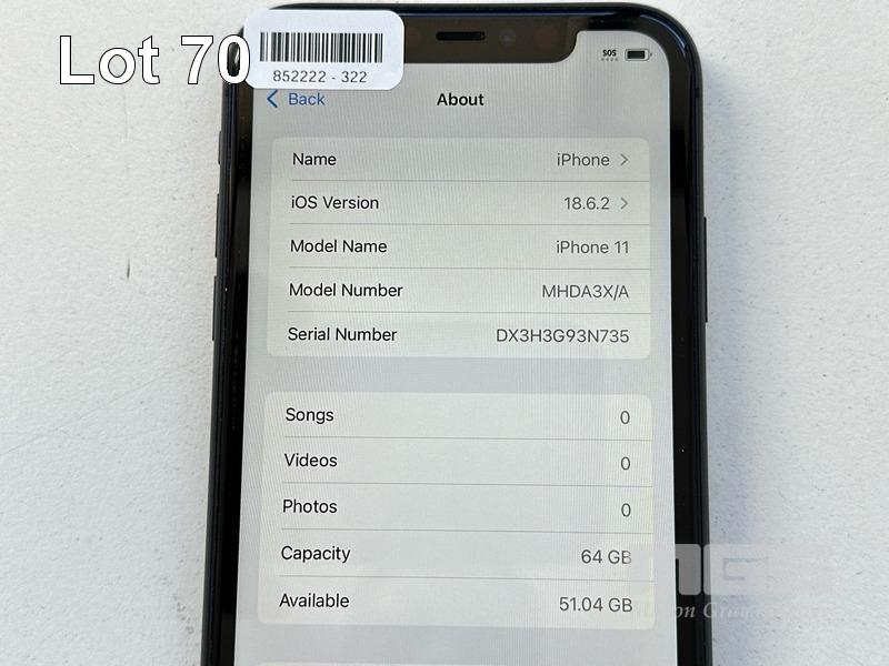 APPLE iPHONE 11, 64GB, MODEL MHDA3X/A, A2221, BLACK, BATTERY HEALTH 83% (NO CABLE, NO CHARGER) S/N:DX3H3G93N735
