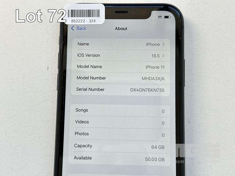 APPLE iPHONE 11, 64GB, MODEL MHDA3X/A, A2221, BLACK, BATTERY HEALTH 82% (NO CABLE, NO CHARGER) S/N:DX4GN7EKN735