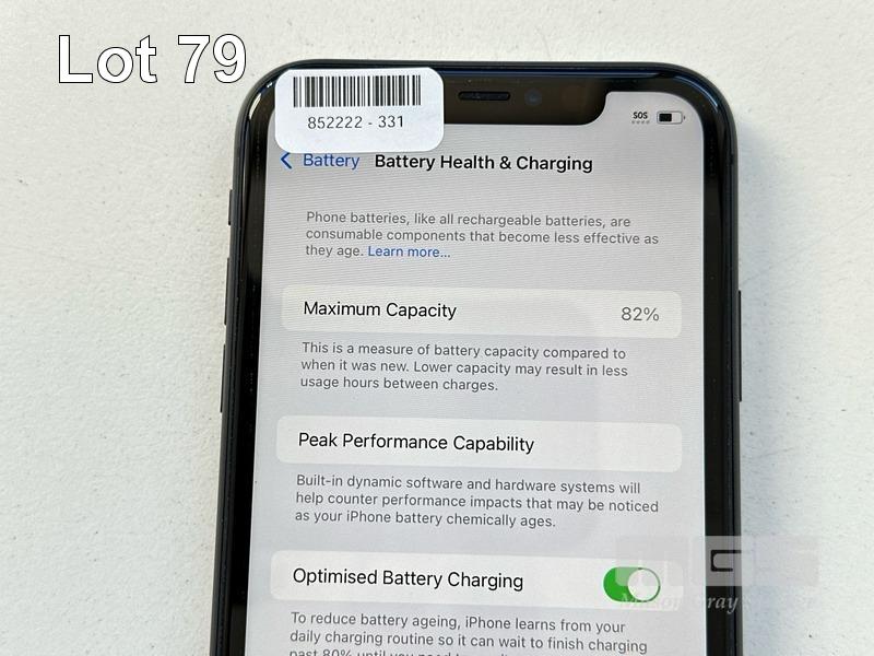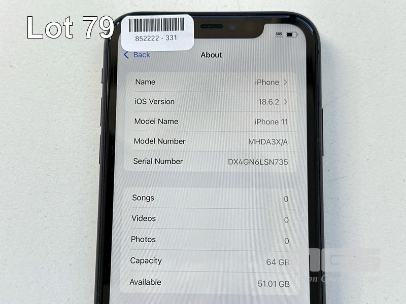 APPLE iPHONE 11, 64GB, MODEL MHDA3X/A, A2221, BLACK, BATTERY HEALTH 82% (NO CABLE, NO CHARGER) S/N:DX4GN6LSN735