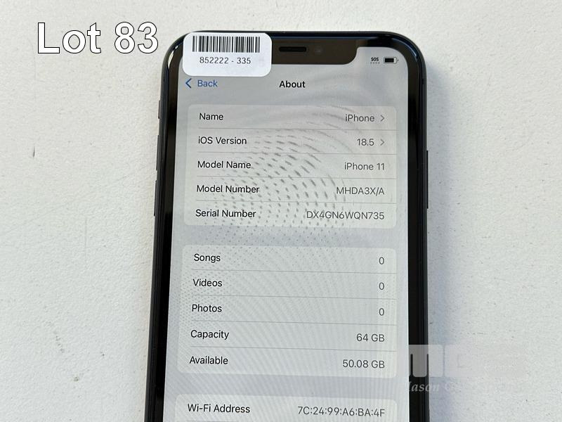 APPLE iPHONE 11, 64GB, MODEL MHDA3X/A, A2221, BLACK, BATTERY HEALTH 81% (NO CABLE, NO CHARGER) S/N:DX4GN6WQN735