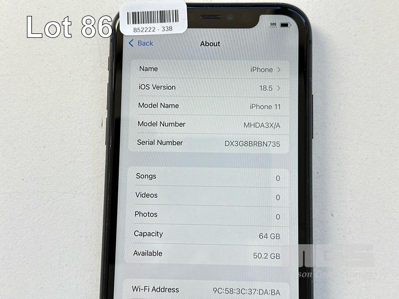 APPLE iPHONE 11, 64GB, MODEL MHDA3X/A, A2221, BLACK, BATTERY HEALTH 81% (NO CABLE, NO CHARGER) S/N:DX3G8BRBN735