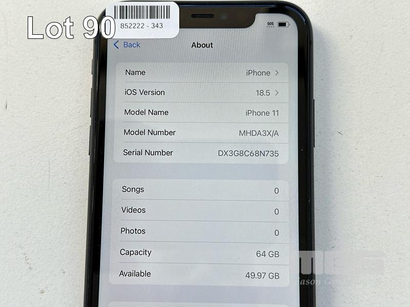 APPLE iPHONE 11, 64GB, MODEL MHDA3X/A, A2221, BLACK, BATTERY HEALTH 80% (NO CABLE, NO CHARGER) S/N:DX3G8C68N735