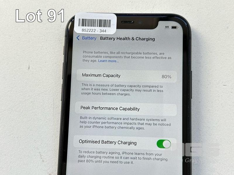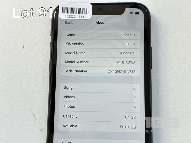 APPLE iPHONE 11, 64GB, MODEL MHDA3X/A, A2221, BLACK, BATTERY HEALTH 80% (NO CABLE, NO CHARGER) S/N:DX4GN74GN735