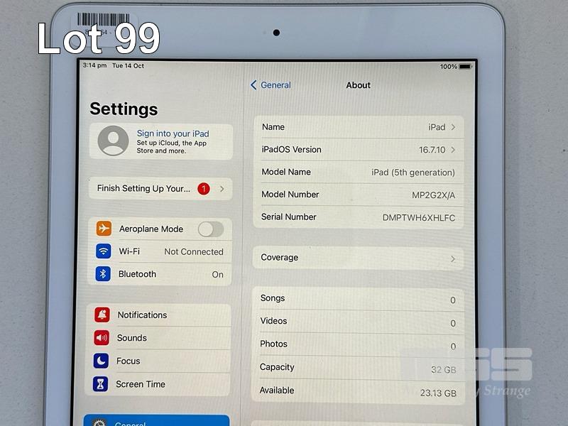 APPLE iPAD 5TH GEN, 32GB, Wi-Fi, SILVER, MODEL MP2G2X/A, A1822 (NO CABLE, NO CHARGER) S/N:DMPTWH6XHLFC