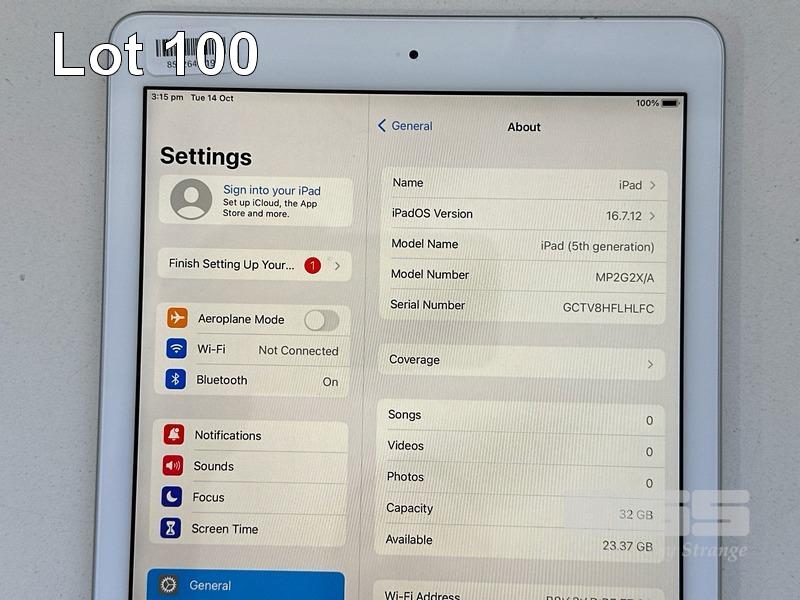APPLE iPAD 5TH GEN, 32GB, Wi-Fi, SILVER, MODEL MP2G2X/A, A1822 (NO CABLE, NO CHARGER) S/N:GCTV8HFLHLFC