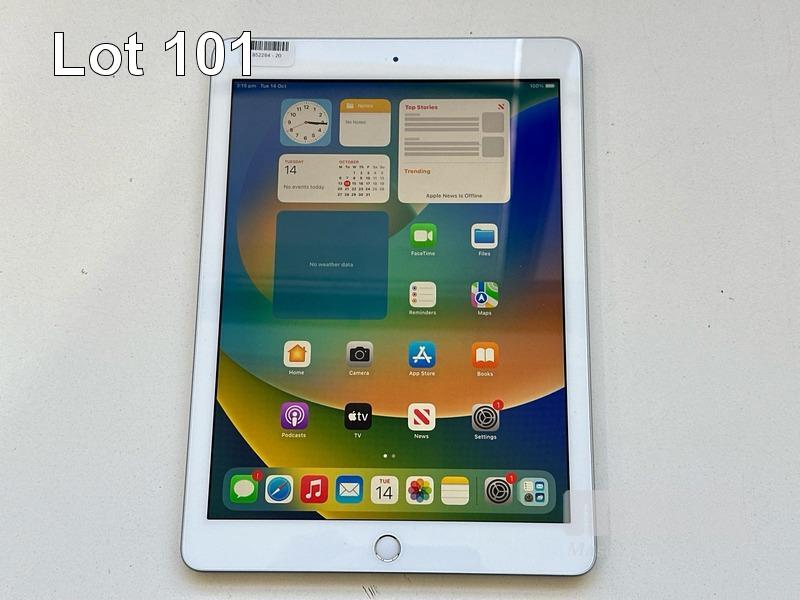 APPLE iPAD 5TH GEN, 32GB, Wi-Fi, SILVER, MODEL MP2G2X/A, A1822 (NO CABLE, NO CHARGER) S/N:GCTVGEM6HLFC