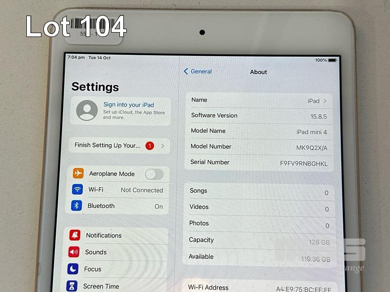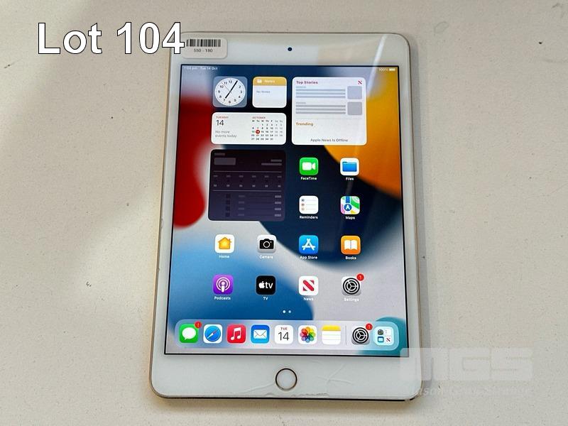 APPLE iPAD MINI 4, 128GB, Wi-Fi, GOLD, MODEL MK9Q2X/A, A1538 (NO CABLE, NO CHARGER) S/N:F9FV9RNBGHKL