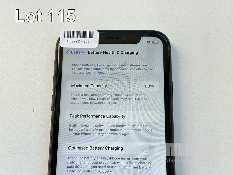 APPLE iPHONE 11, 64GB, MODEL MHDA3X/A, A2221, BLACK, BATTERY HEALTH 88% (NO CABLE, NO CHARGER) (NOTE: MINOR SCRATCHES ON SCREEN) S/N:DX4GN7CFN735