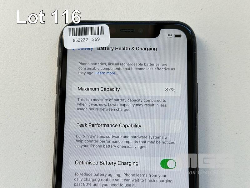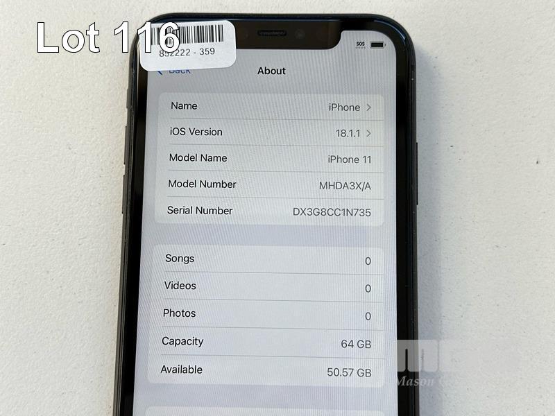 APPLE iPHONE 11, 64GB, MODEL MHDA3X/A, A2221, BLACK, BATTERY HEALTH 87% (NO CABLE, NO CHARGER) (NOTE: MINOR SCRATCHES ON SCREEN) S/N:DX3G8CC1N735