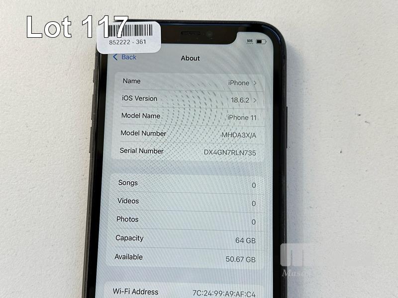 APPLE iPHONE 11, 64GB, MODEL MHDA3X/A, A2221, BLACK, BATTERY HEALTH 81% (NO CABLE, NO CHARGER) (NOTE: MINOR SCRATCHES ON SCREEN) S/N:DX4GN7RLN735