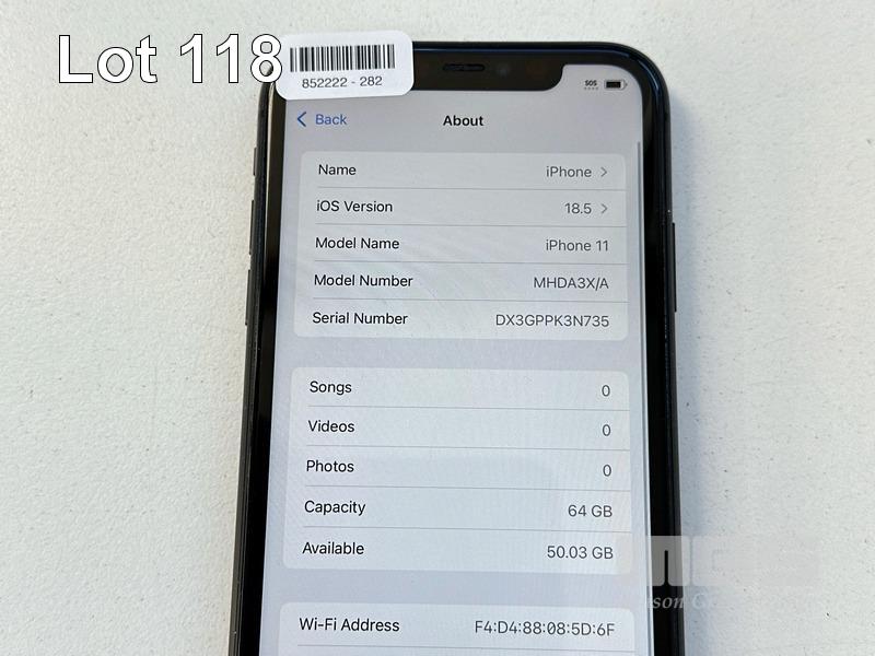 APPLE iPHONE 11, 64GB, MODEL MHDA3X/A, A2221, BLACK, BATTERY HEALTH 80% (NO CABLE, NO CHARGER) (NOTE: MINOR SCRATCHES ON SCREEN) S/N:DX3GPPK3N735
